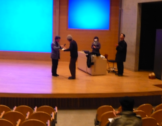というのも、コンペの結果発表がθ内ですでに行われているとはツユ知らず、のんびりと片付けをしていて「そろそろ時間かな〜〜?」と中を覗いたら、優秀賞(5人)の5人目の表彰が行われていたという・・えええええ!とあわてて最後列の椅子に座ったら、