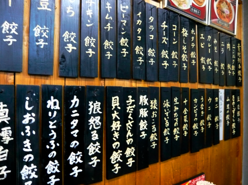 チョコレート餃子、うなぎ餃子、ヨーグルト餃子、ウニ餃子、ごはん餃子、コーヒー餃子、レバー餃子、カレー餃子などなど。変わり餃子も美味しいけど・・やっぱり普通の餃子がいいかもしれない。。