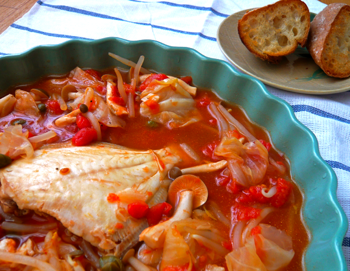 そうま&団長が釣ってきた魚(名前は分からない。キス?)を頂いたので、ちょっとスープ蒸しにしてみた。