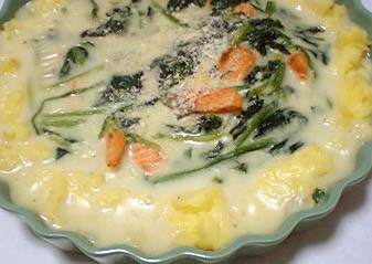 4人前でもおかしくない量あります。私の顔がすっぽり入る大きさ(分かりにくい)の皿。でもまあ、主食とかサブのおかずとか無いからいいよね。周りはマッシュポテトで、中身は鮭とほうれんそうのグラタンですー。ウマウマ!!!!!