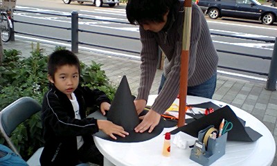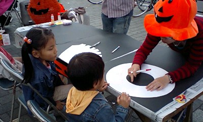 子供たちの工作教室(黒い模造紙でハロウィンハットを作ろう!の巻き)を全面的に手伝いました。1回100円。売り上げは一切もらえません♪♪♪でもボランティア精神が身につきました。(ら、ら、楽観的)